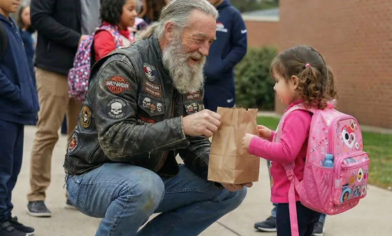 My 5-year-old daughter has been giving her lunch to a scary biker every ...
