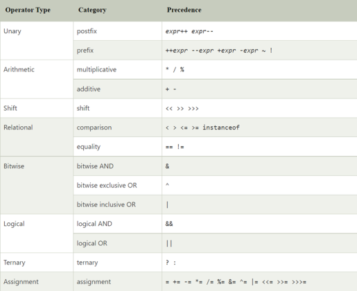 Operators in Java and their precedence - TUTORIAL GRID