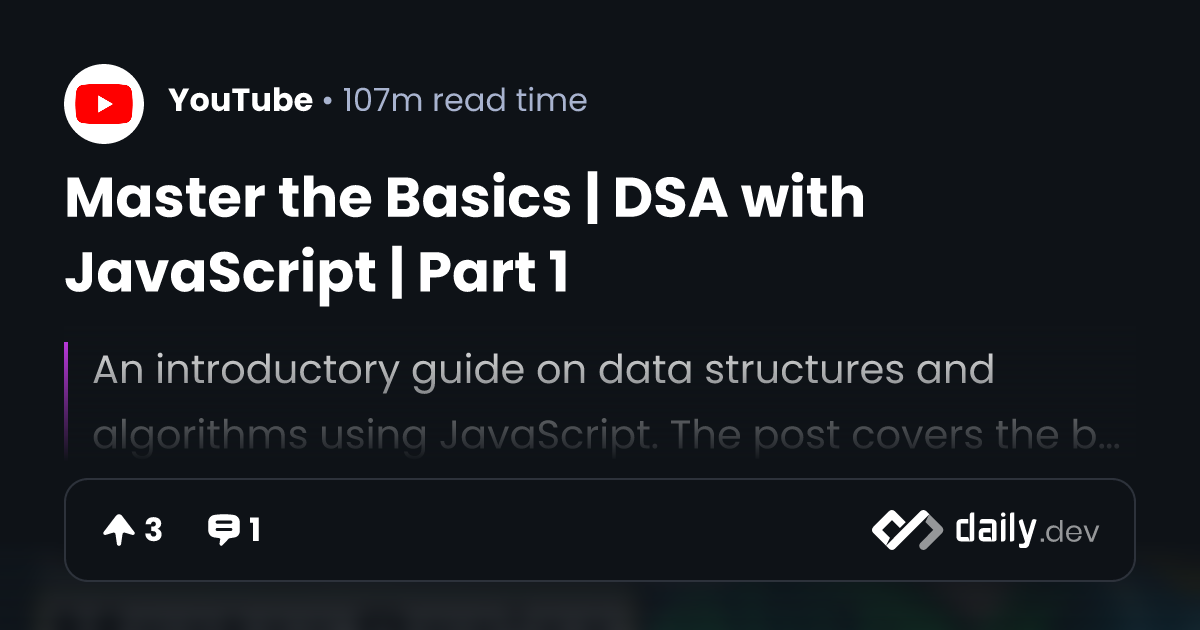 Master the Basics | DSA with JavaScript | Part 1 | daily.dev
