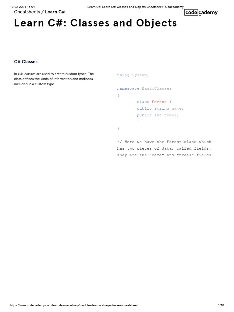 Learn C# - Learn C# - Classes and Objects Cheatsheet - Codecademy | PDF ...