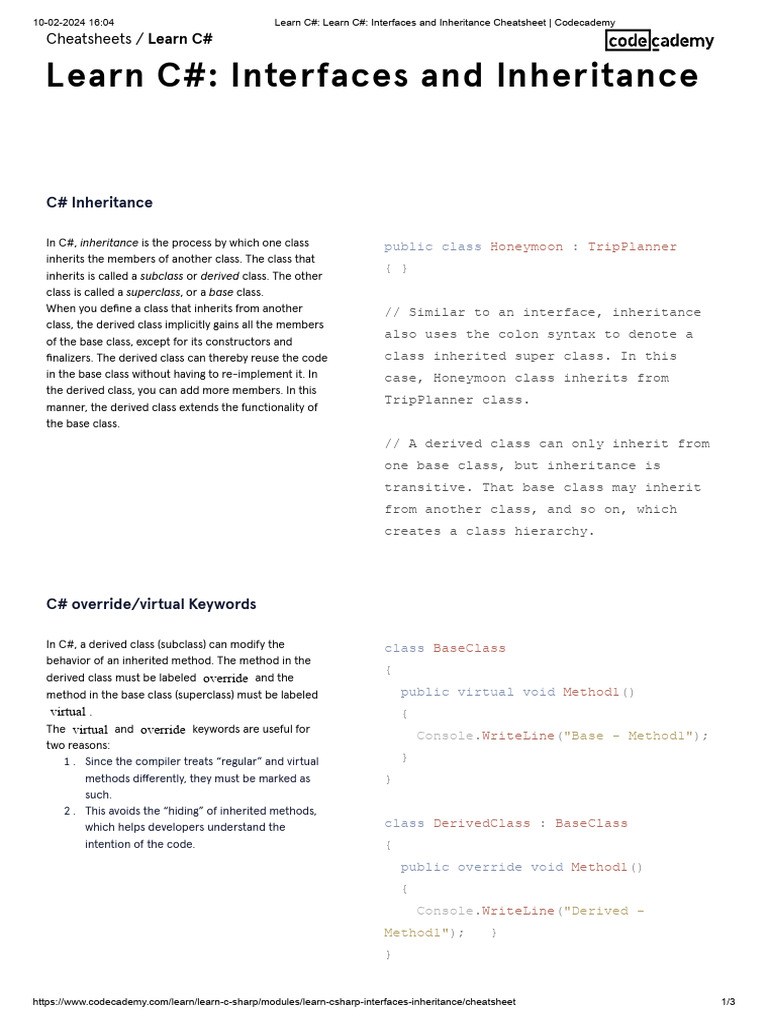 Learn C# - Learn C# - Interfaces and Inheritance Cheatsheet ...