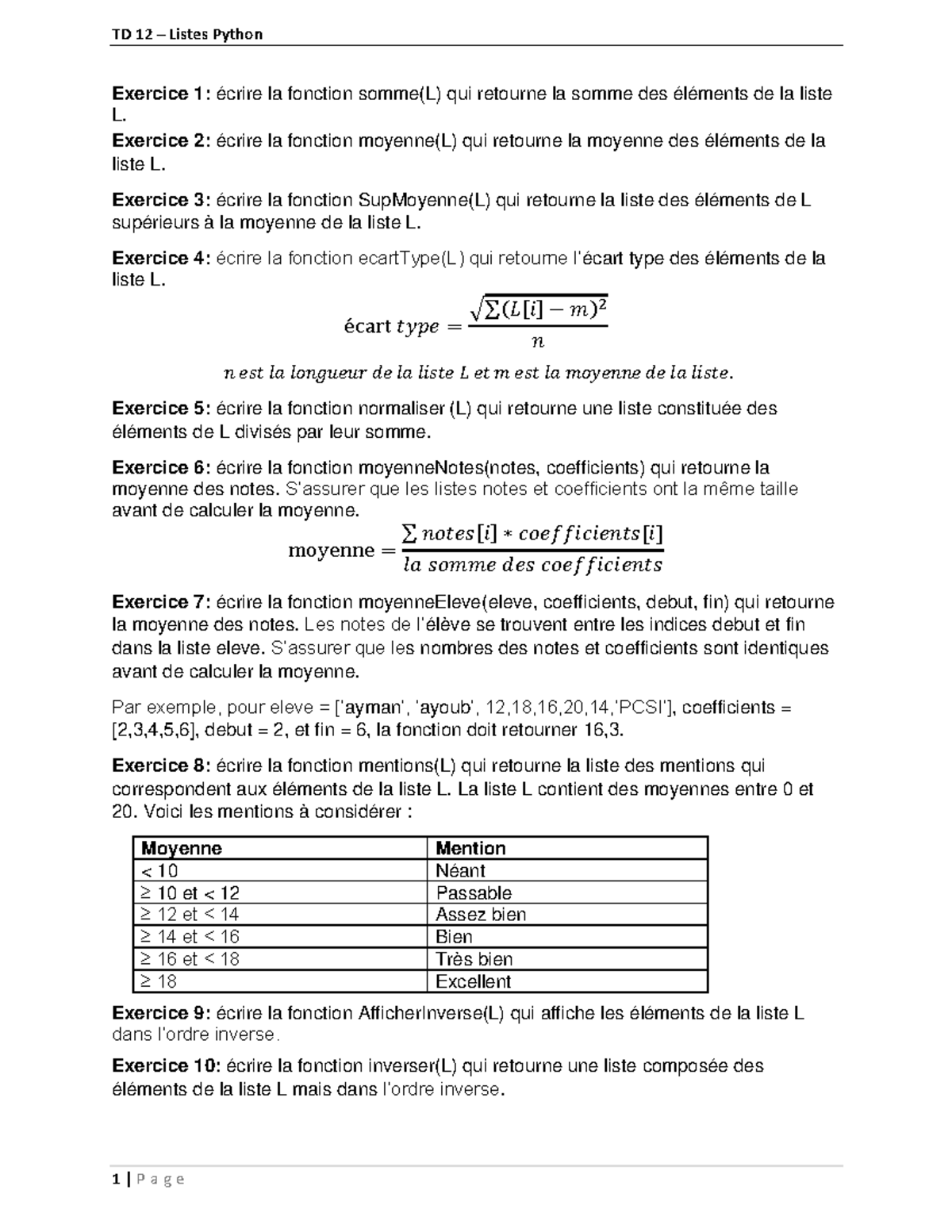 TD12 - TD12 - TD 1 2 – Listes Python 1 | P a g e Exercice 1: écrire la ...