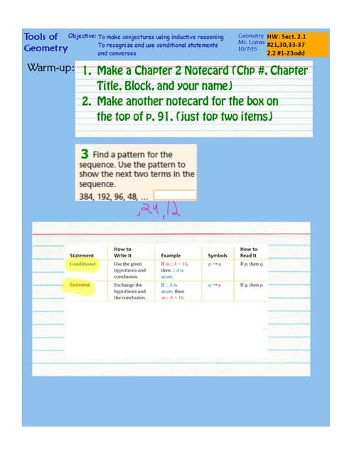 Conditional Statements and Biconditional Statements Notes and Worksheet