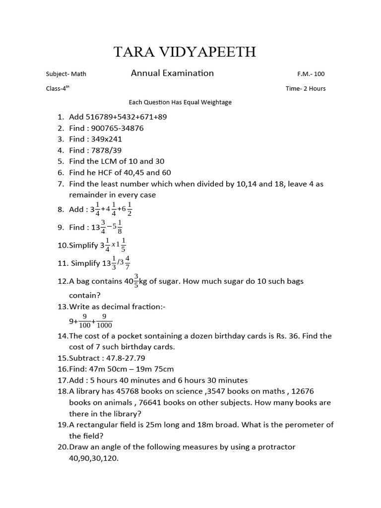P.4 Maths | PDF