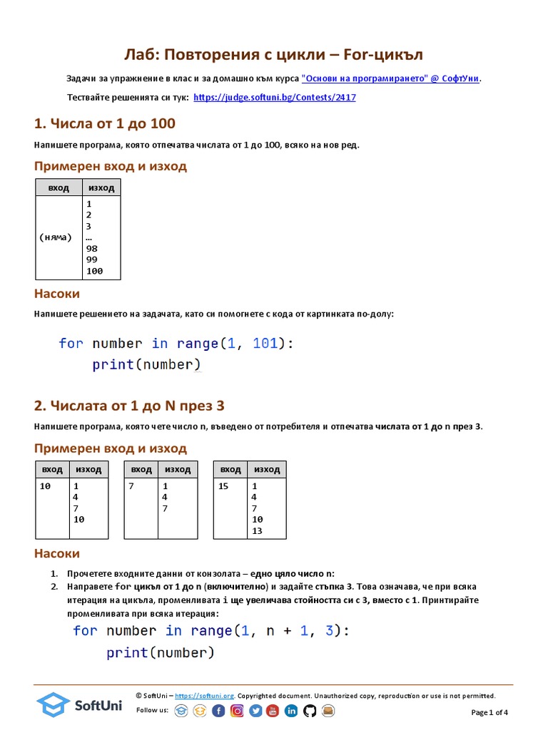 For Loop Exercises 2 | PDF