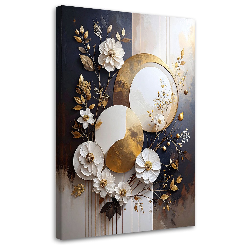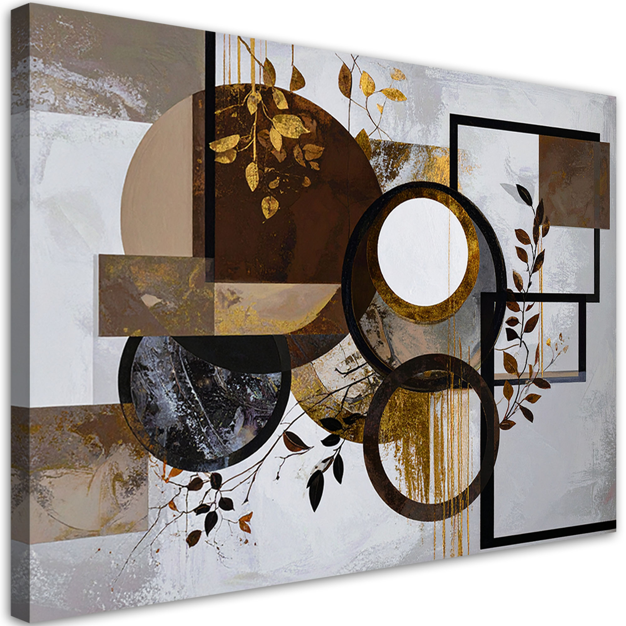Impression sur Toile, Abstraction géométrique de cercles et de feuilles ...