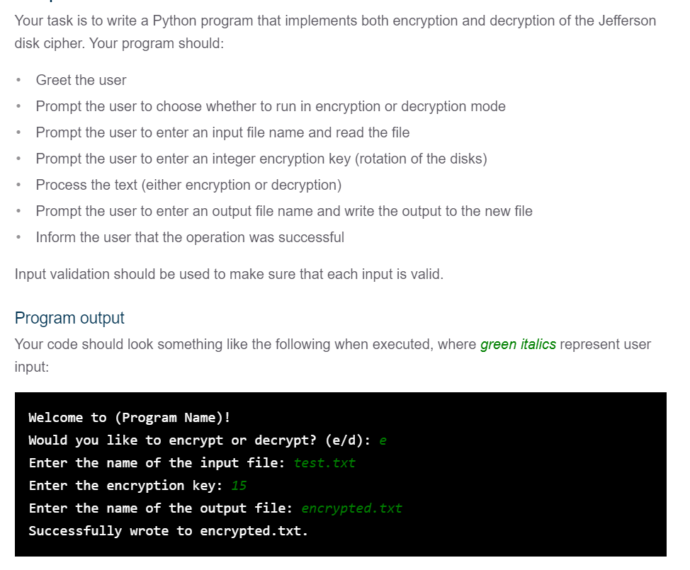 Solved Project 2: Cipher implementation in python The | Chegg.com