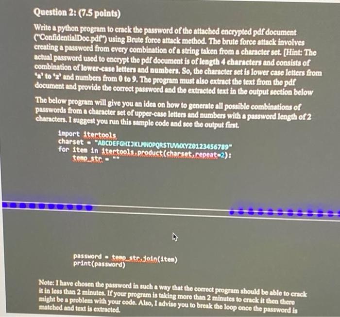 Solved Question 2: (7.5 points) Write a python program to | Chegg.com