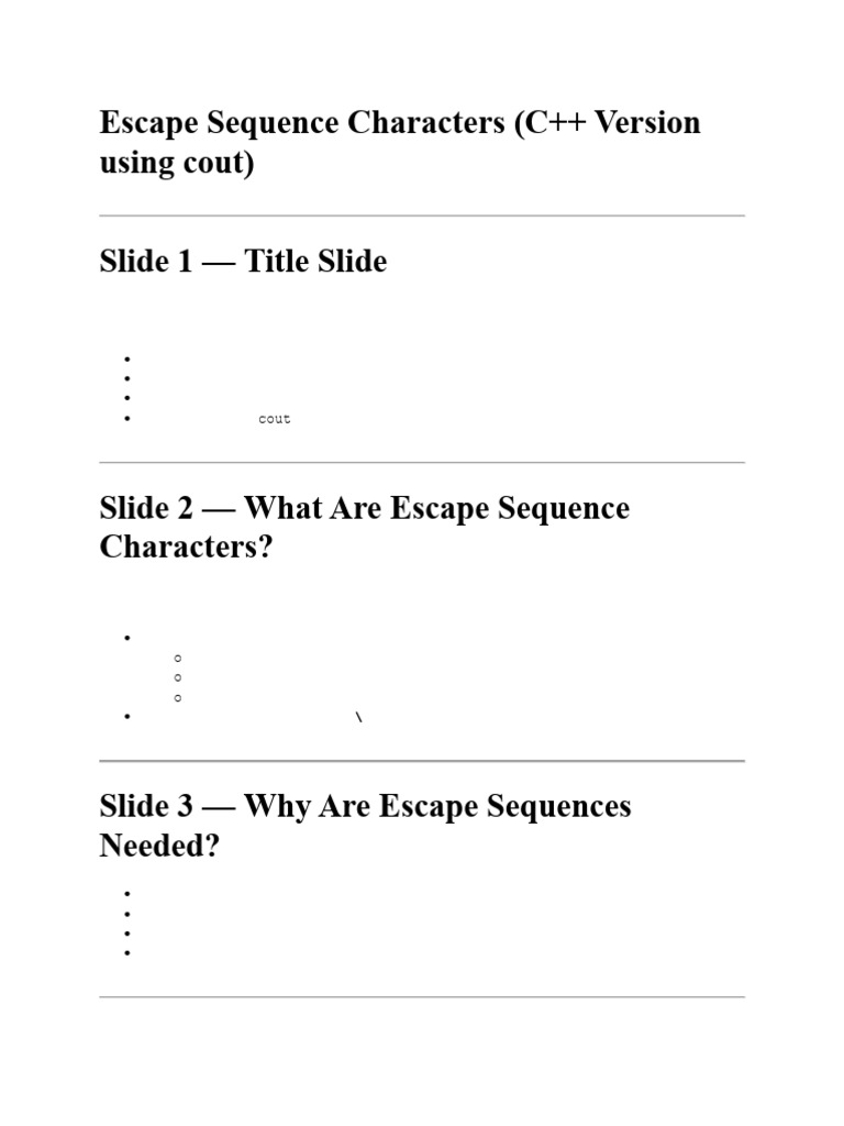 Escape Sequences - C++ Programming - Notes - Teachmint