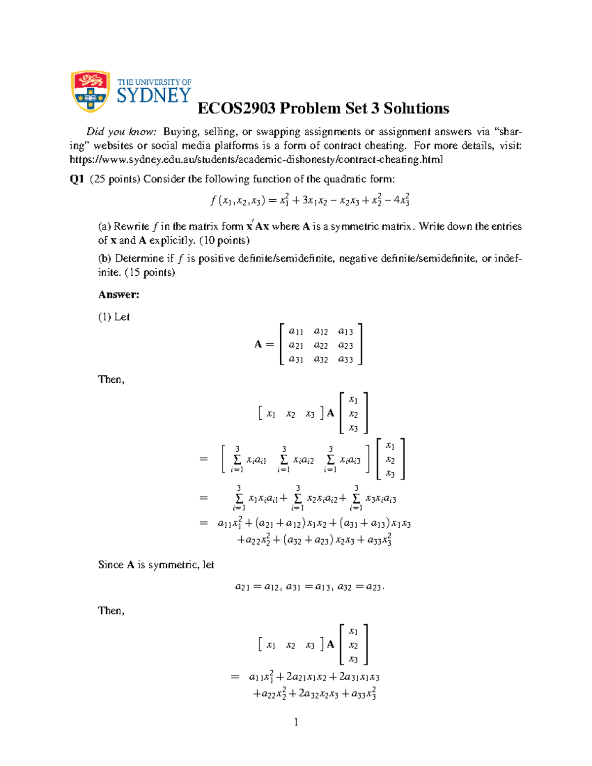 PS3solution v2 - ECOS2903 Problem Set 3 Solutions Did you know: Buying ...