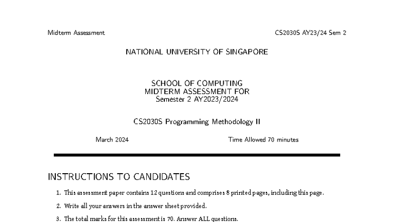 Midterm Assessment Solutions for CS2030S Sem 2 - March 2024 - Studocu