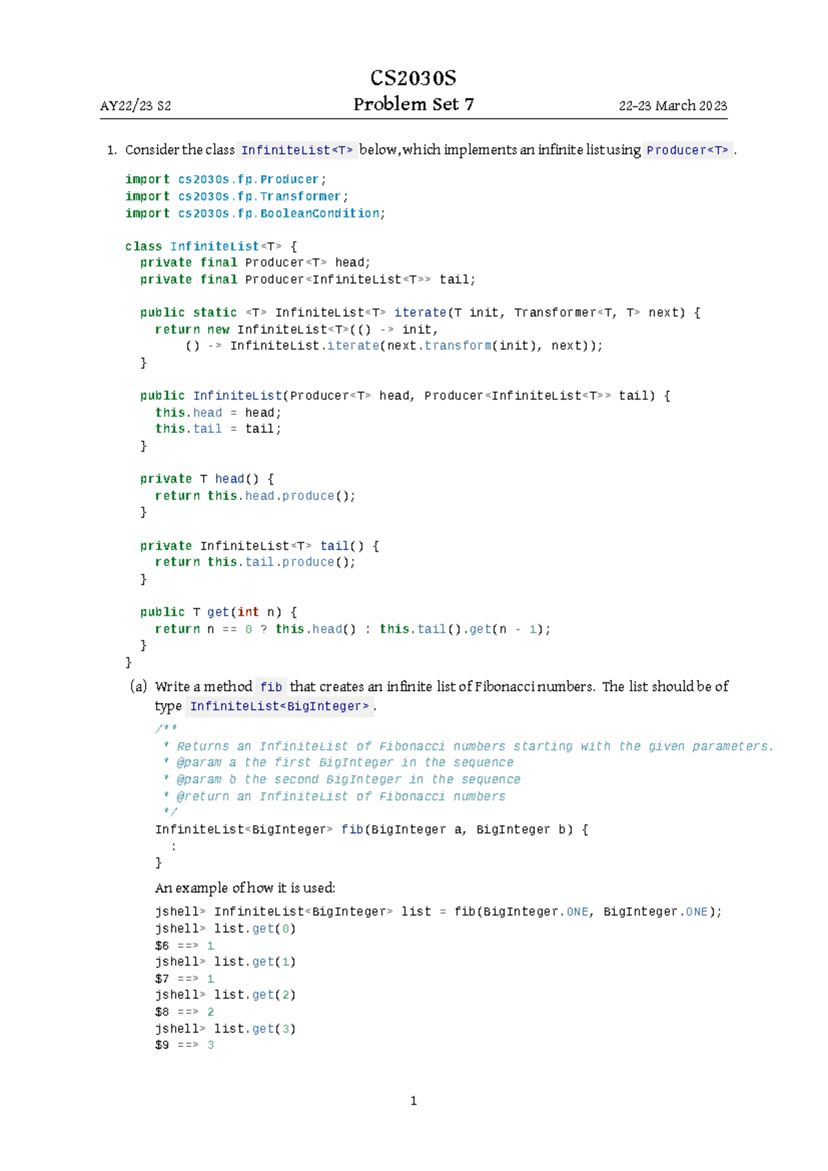 CS2030S S2 Problem Set 7: Infinite Lists and Fibonacci Numbers - Studocu