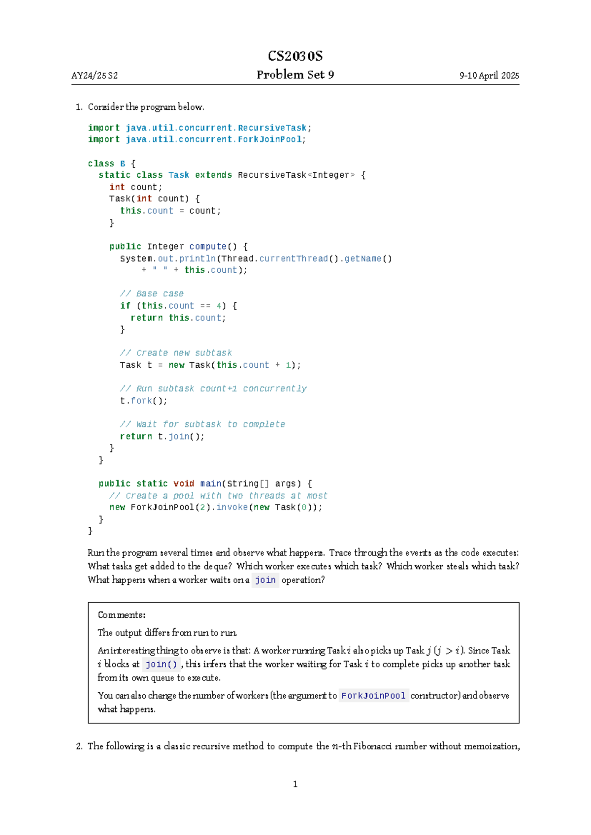 CS2030S S2 Problem Set 9: Analyzing ForkJoinPool and Fibonacci Tasks ...