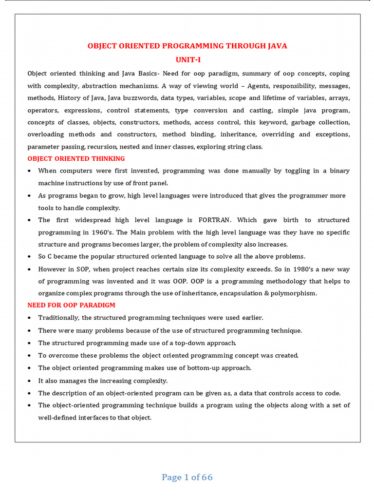 OOPS JAVA UNIT-I Notes | PDF | Object Oriented Programming | Method ...