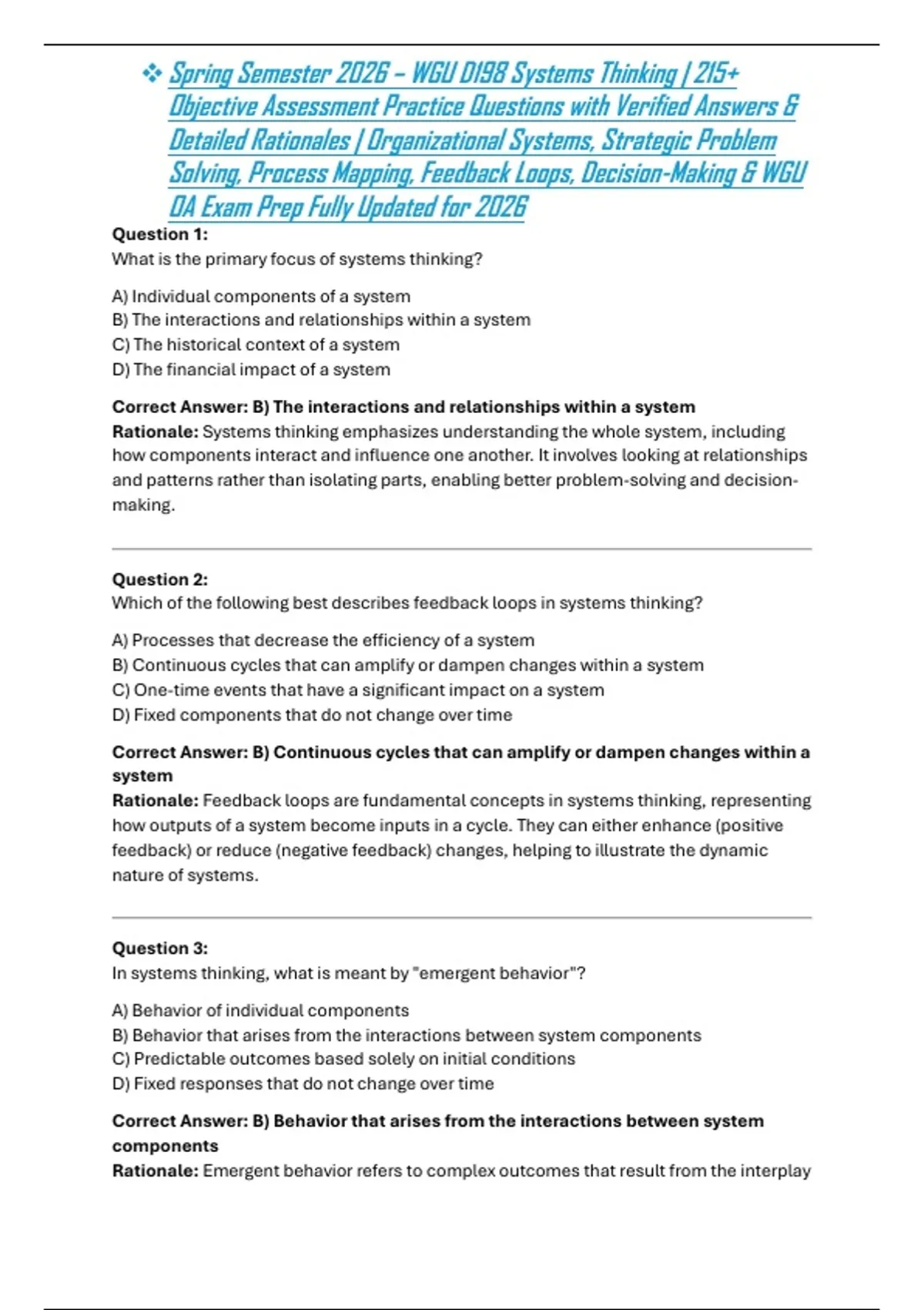 Spring Semester 2026 – WGU D198 Systems Thinking | 215+ Objective ...