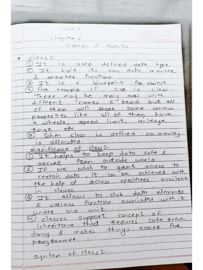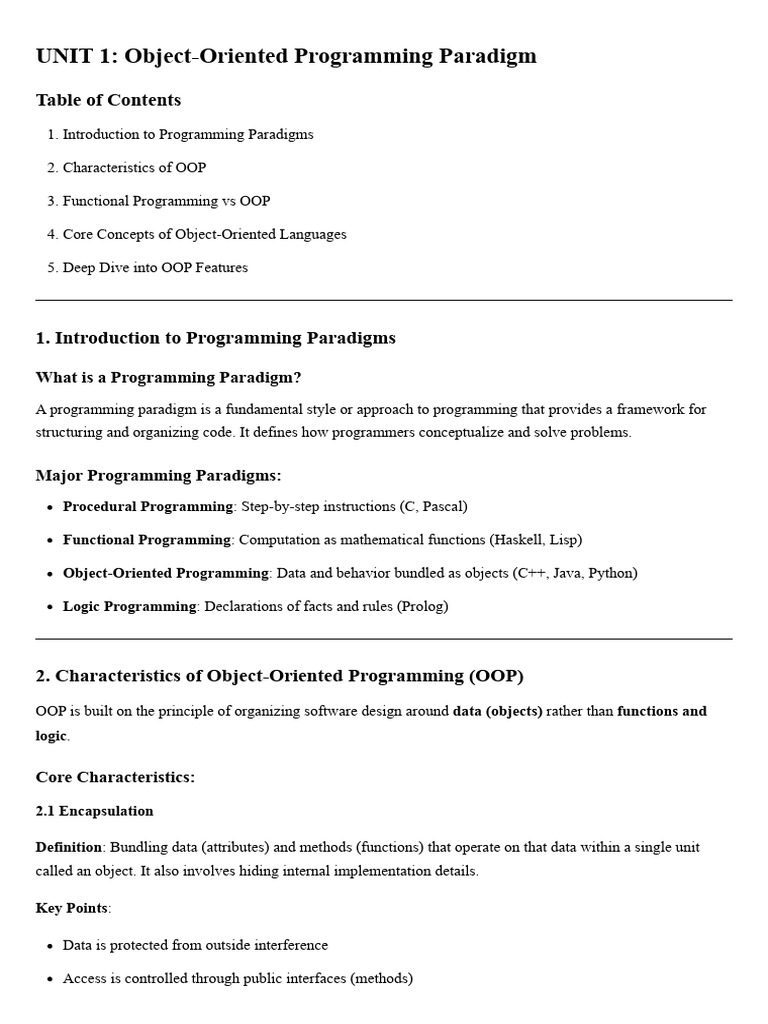 Unit 1 - OOP Paradigm - Complete Theory Notes | PDF | Class (Computer ...