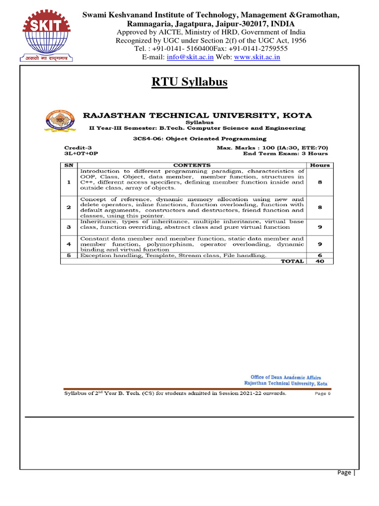 Object Oriented Programming All Unit Notes | DOCX