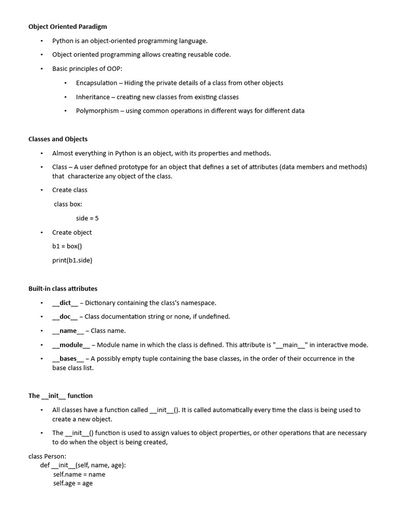Oop Notes | PDF | Class (Computer Programming) | Object Oriented ...