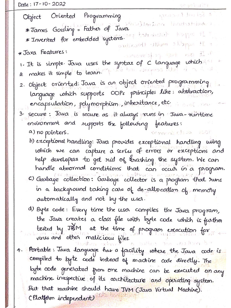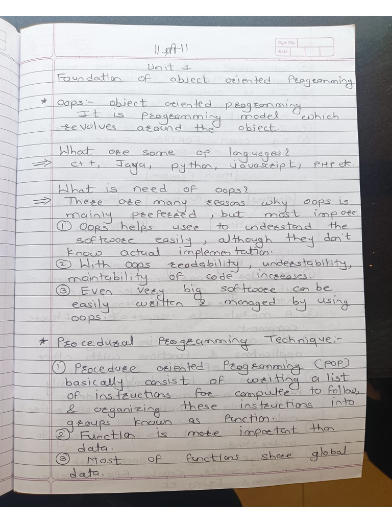 OOP Notes Object Oriented Programming Notes for Study Material
