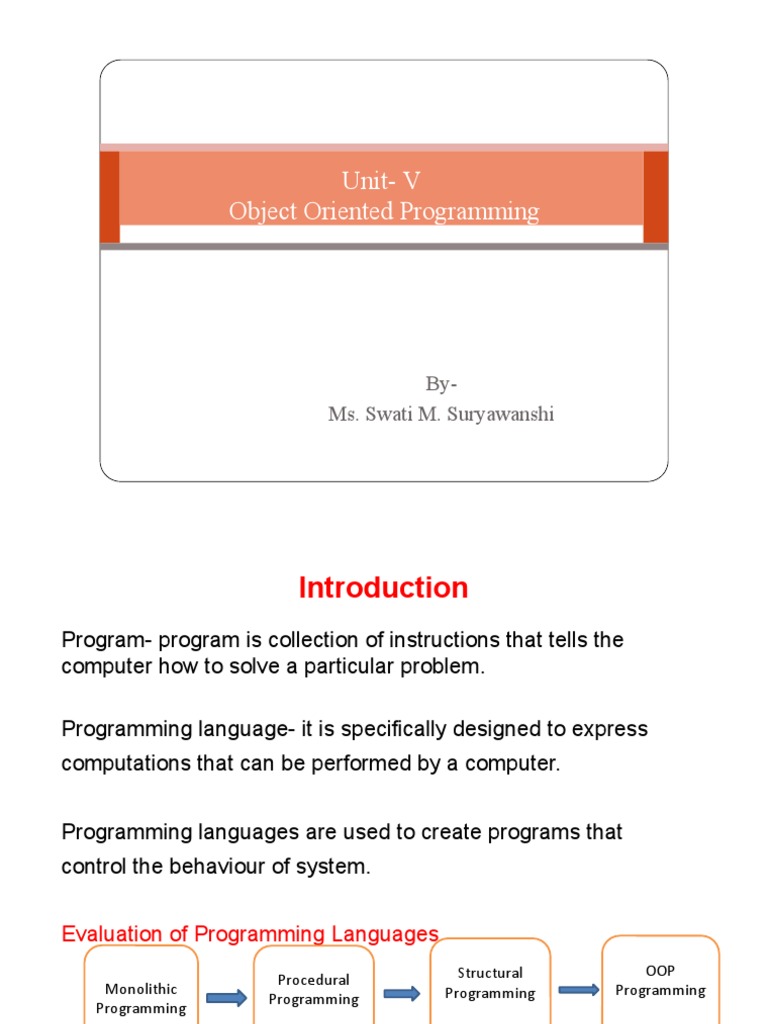 Unit-1 Oop Basics | PDF | Object Oriented Programming | Class (Computer ...