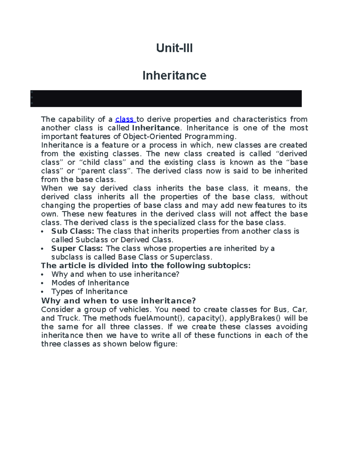 Unit III: Detailed Notes on Inheritance in OOP (C++) - Studocu