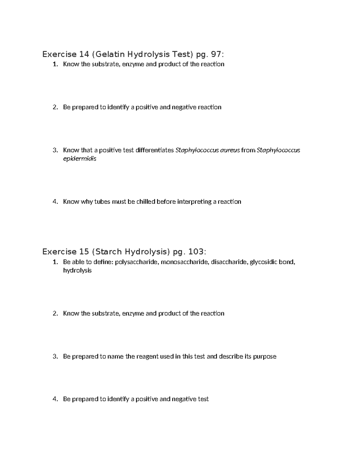 Lab Exam 2 Study Guide - Notes - Exercise 14 (Gelatin Hydrolysis Test ...