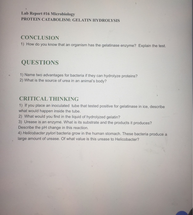 Solved Lab Report #16 Microbiology PROTEIN CATABOLISM: | Chegg.com
