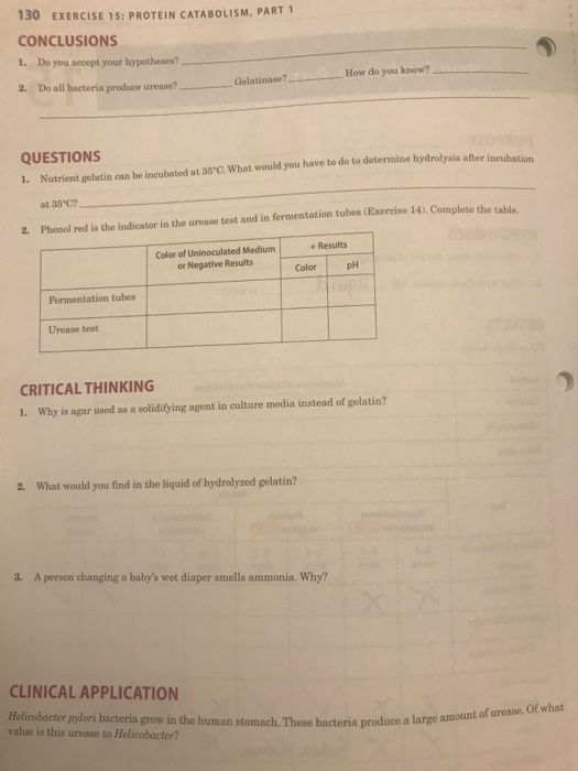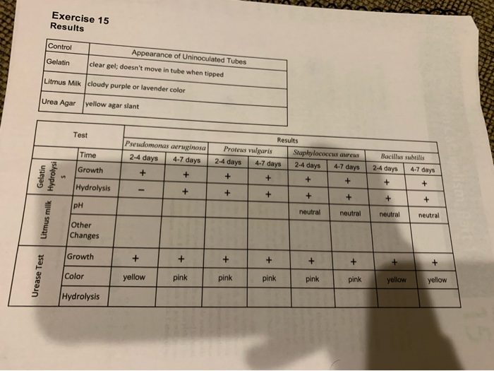 Microbiology Lab Results: Gelatin & Urea Hydrolysis, | Course Hero