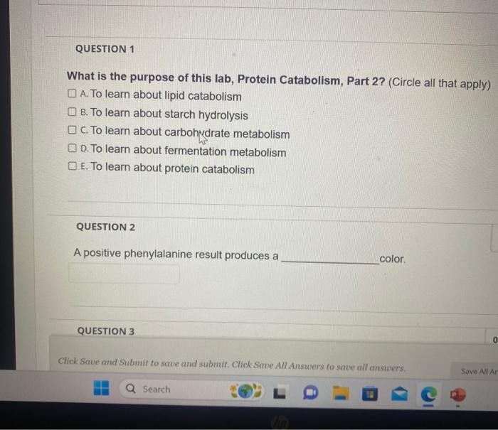 Solved What is the purpose of this lab, Protein Catabolism, | Chegg.com