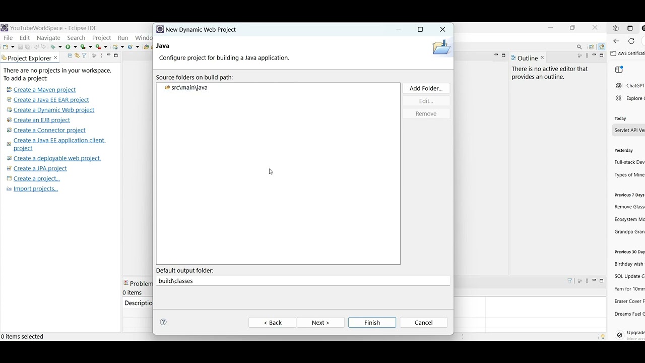 Based on this image's title: “Java Project Class 3 Creating Dynamic Web Project - YouTube”