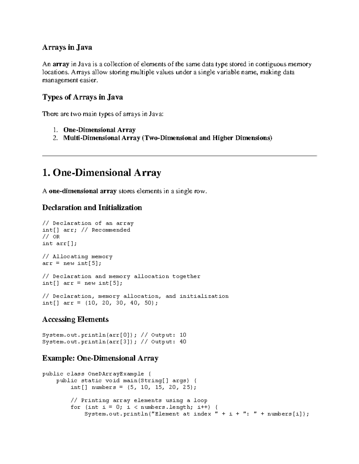 Arrays in Java - Lecture Notes on Types and Usage - Studocu