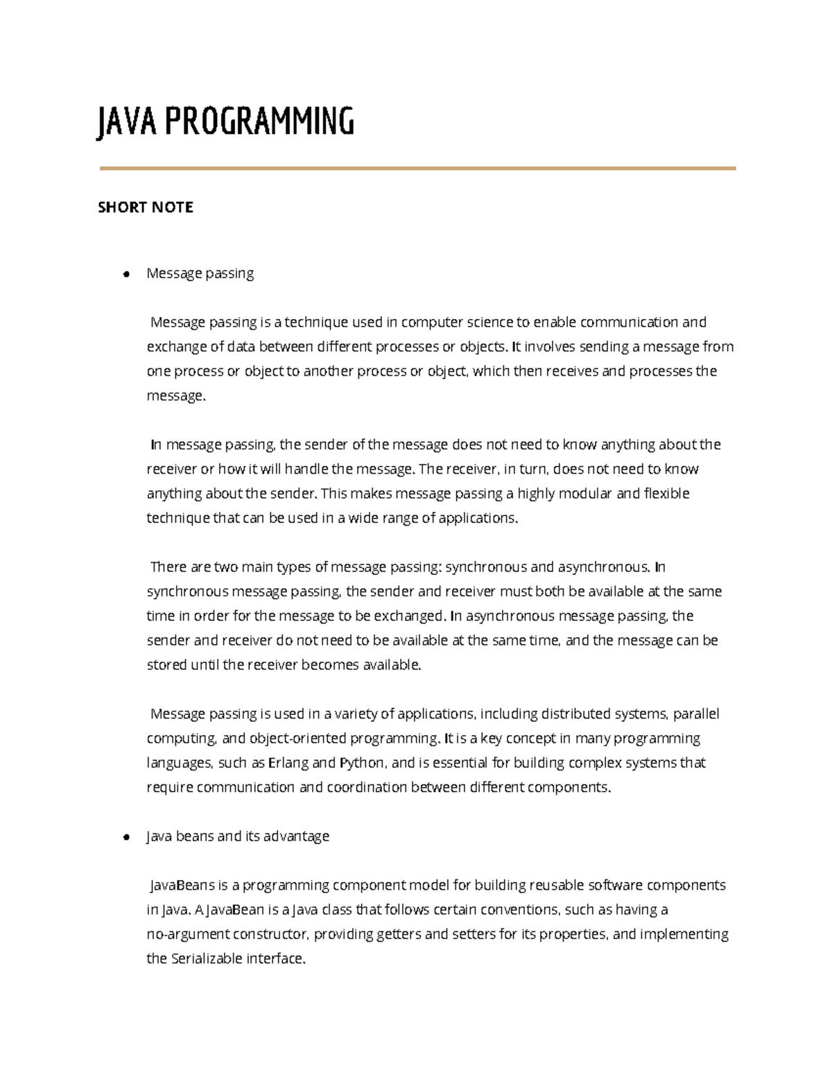 Java - full notes - JAVA PROGRAMMING SHORT NOTE Message passing Message ...