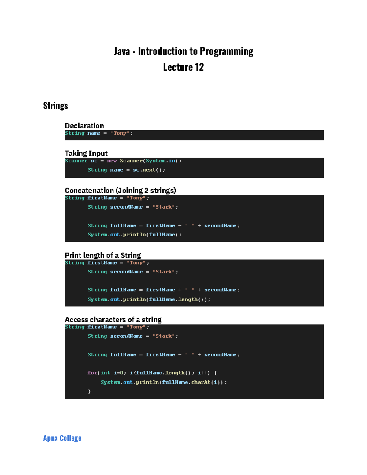 Java Programming Lecture 12: Strings and Input Handling - Studocu