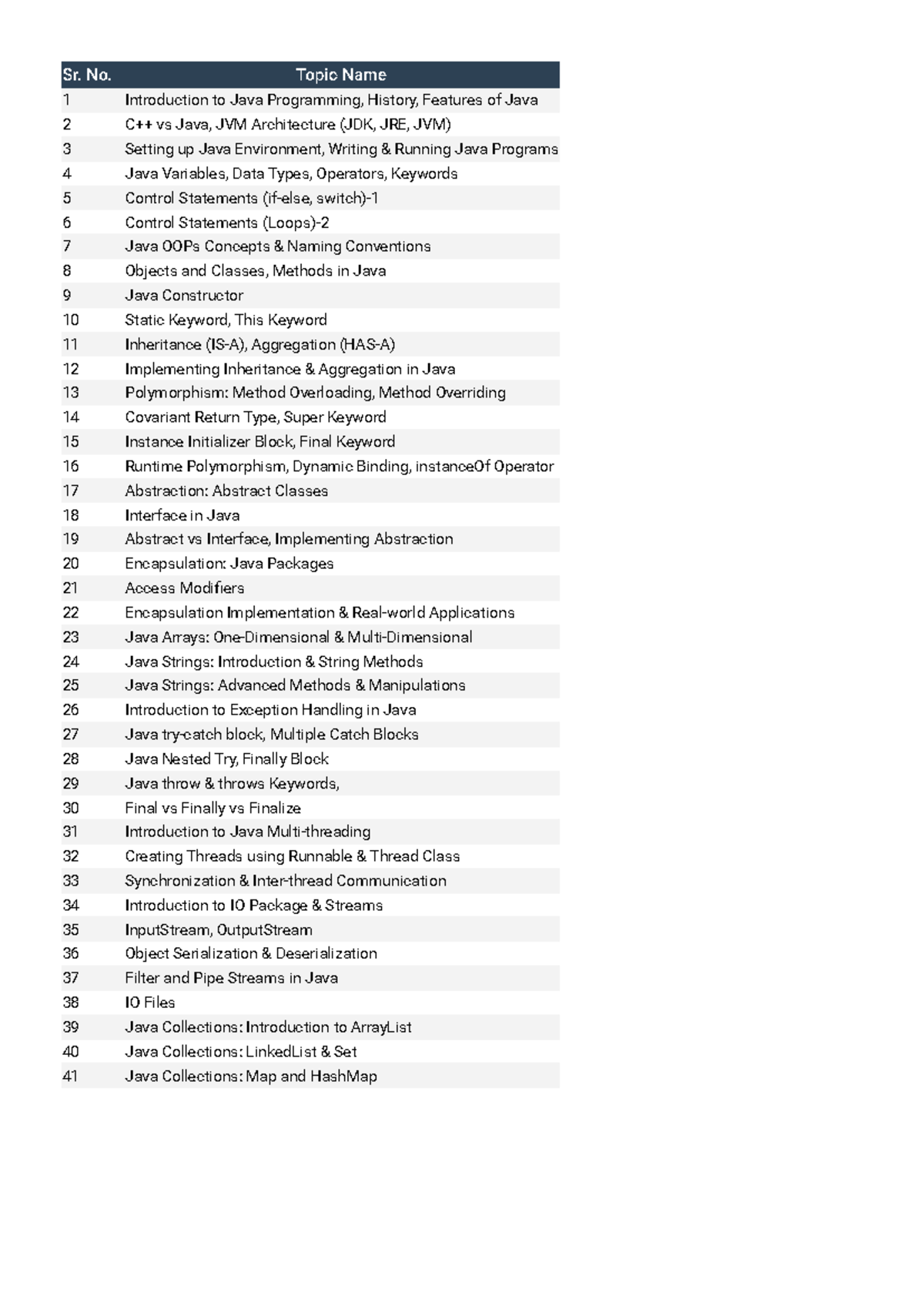 Java Programming Concepts Overview - CS101 Lecture Notes - Sr. No ...