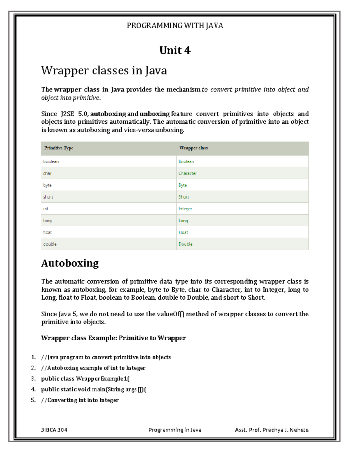Unit 4: Java Wrapper Classes and Interfaces - 3IBCA 304 Notes - Studocu