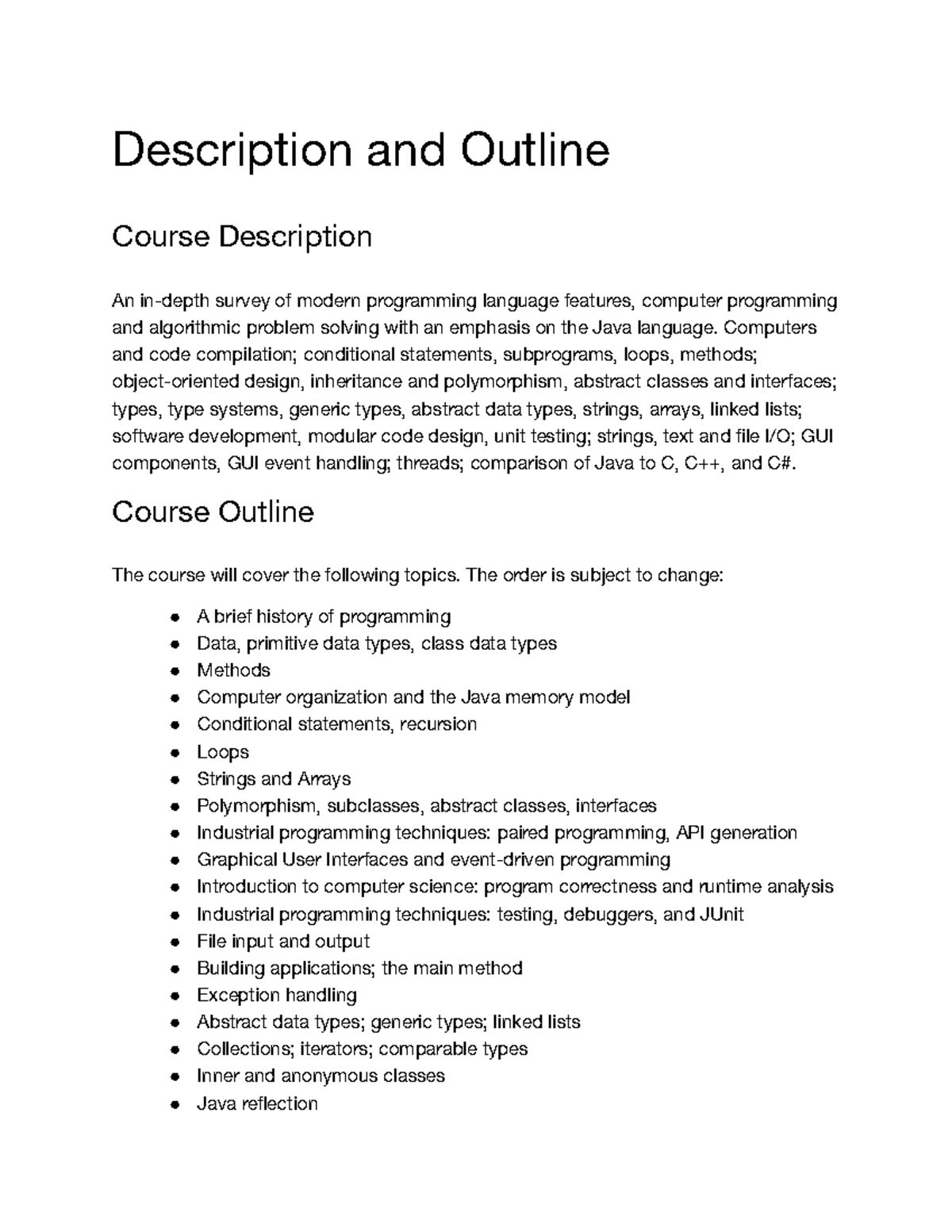 CSDS 132: Java Programming Course Syllabus and Overview - Studocu