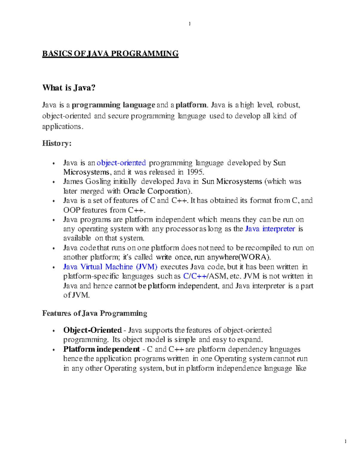 Javaunit 1 - java unit 1 - JAVA PROGRAMMING - CS405PC Origins.... In ...