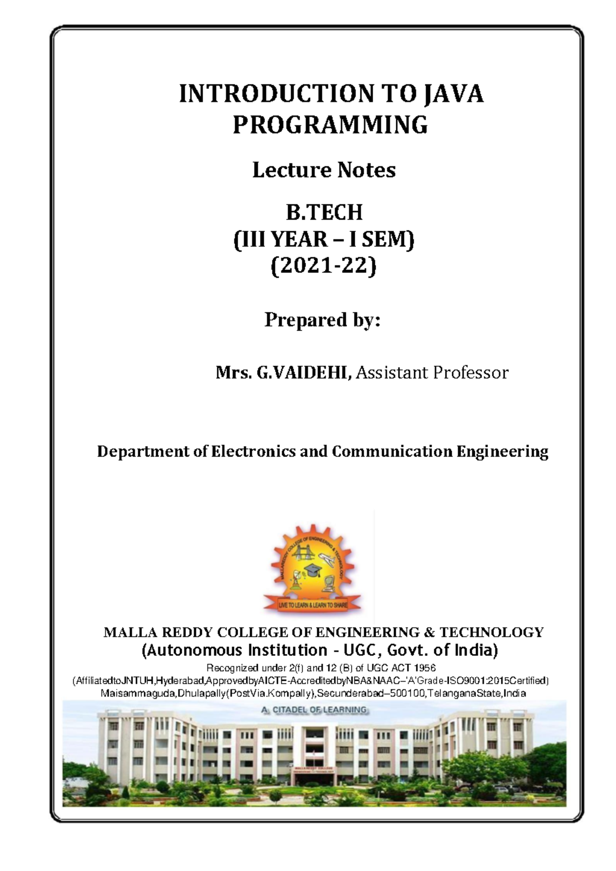 Java Programming - Lecture notes 1 - JAVA PROGRAMMING Prepared By R M ...
