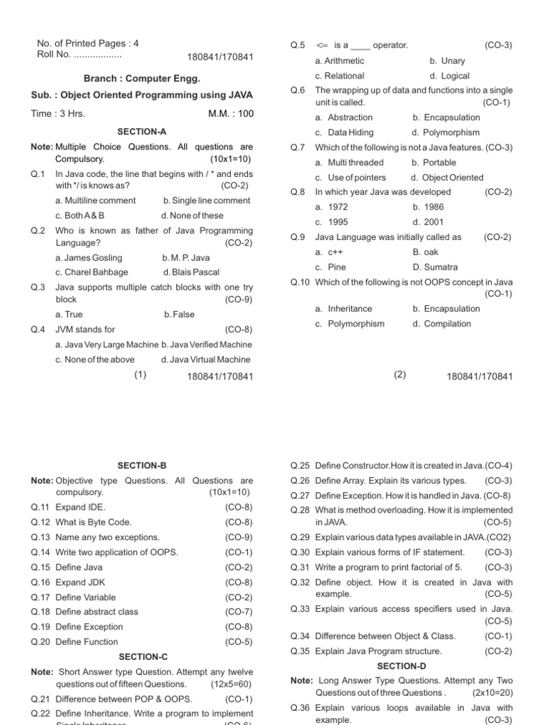Computer 4 Sem Object Oriented Programming Using Java 180841 Jul 2022 | PDF