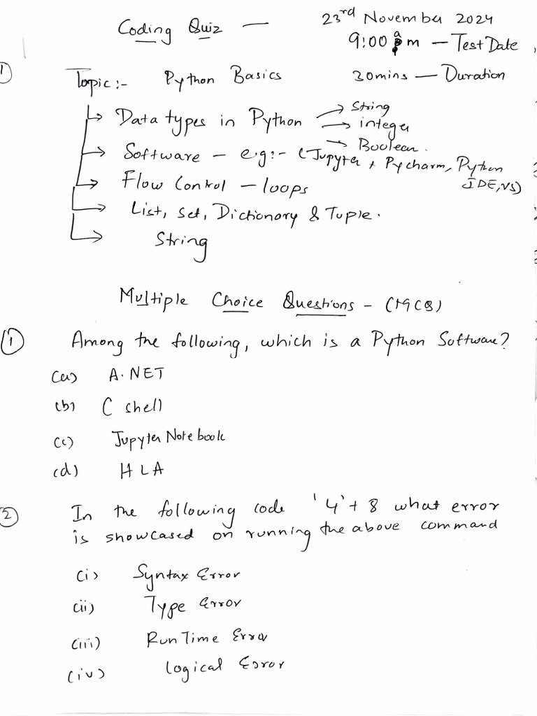 Unit-1 Python Basic MCQ with Answers - • Python Basic MCQ with Answers ...
