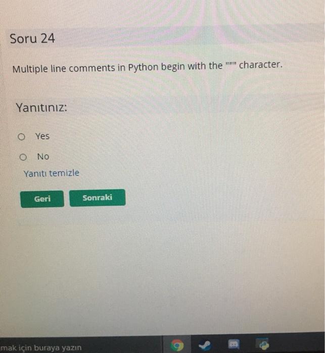 Solved Soru 24 Multiple line comments in Python begin with | Chegg.com