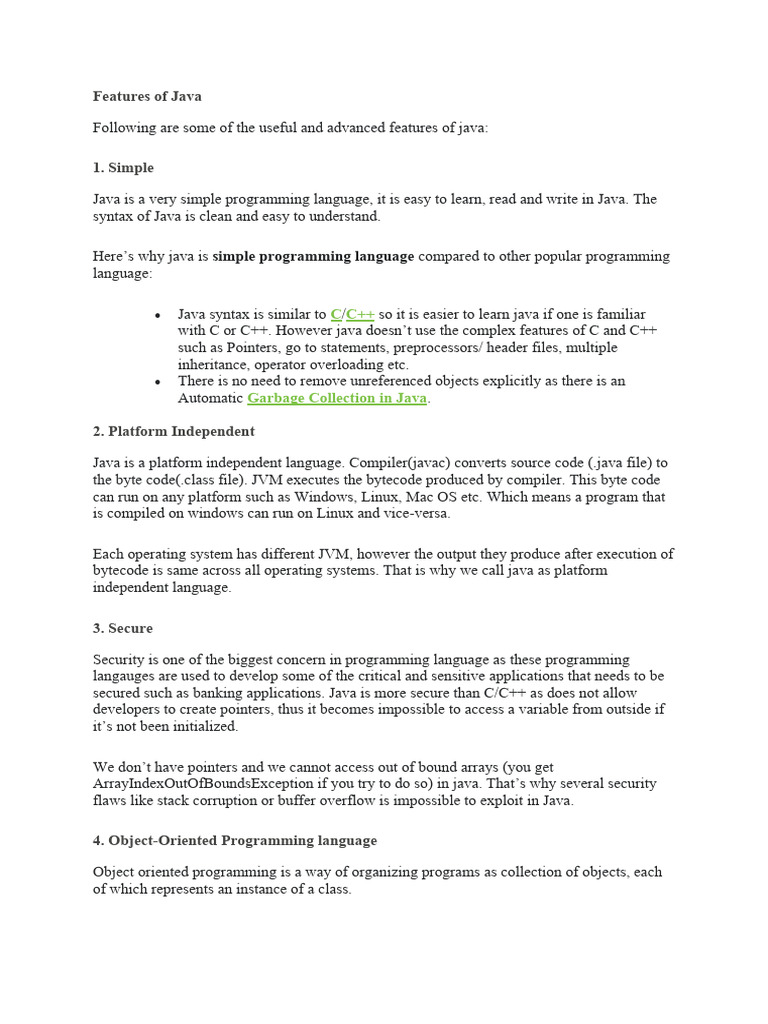 Features of Java | PDF | Java (Programming Language) | Method (Computer ...