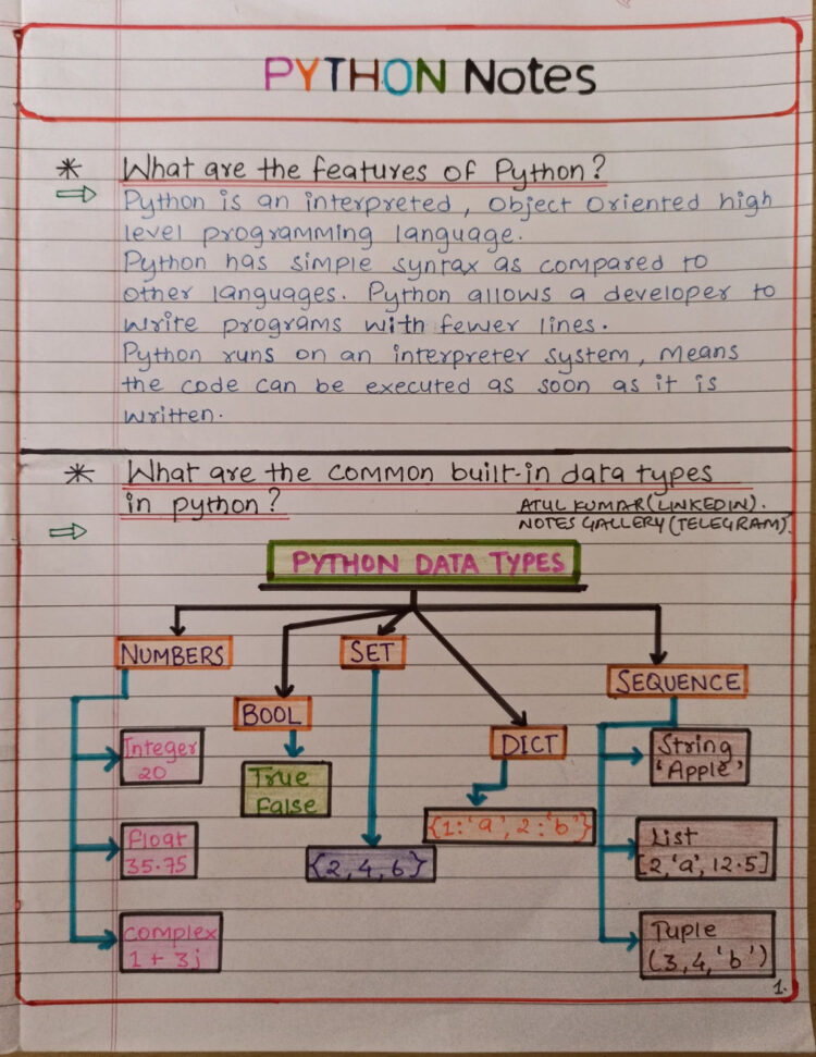 Python Handwritten Notes PDF Download - StudentHouse