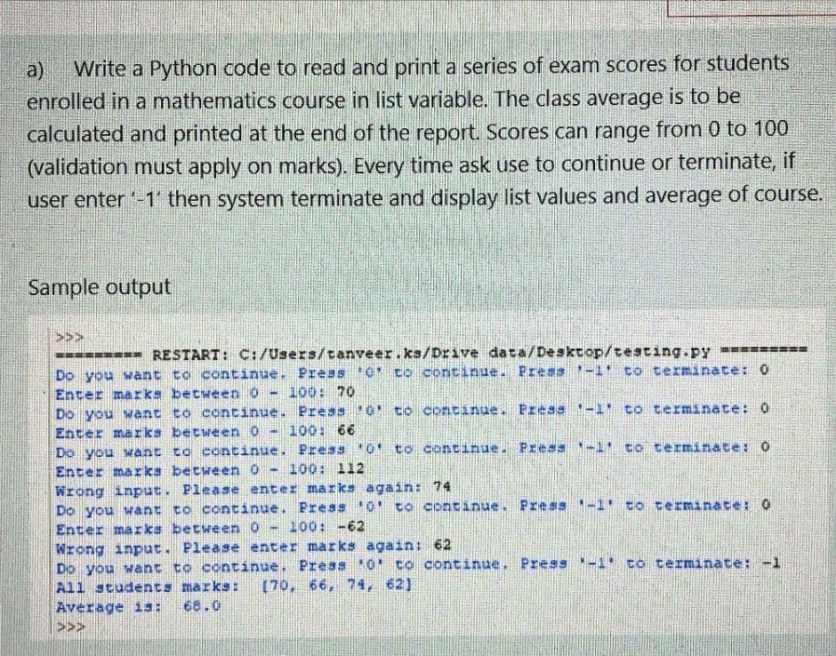 Solved a) Write a Python code to read and print a series of | Chegg.com