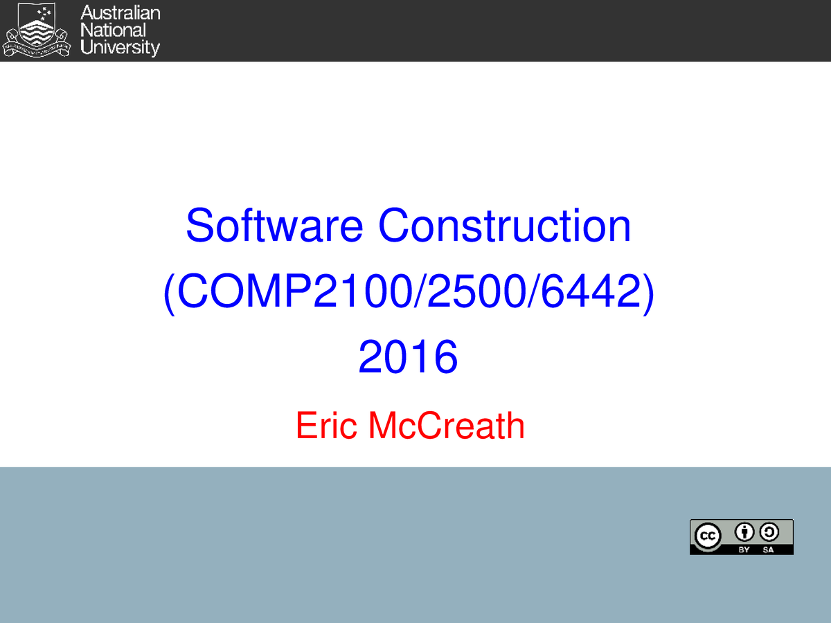 Lecture slides, lecture 1-10 - Software Construction (COMP2100/2500/ ...
