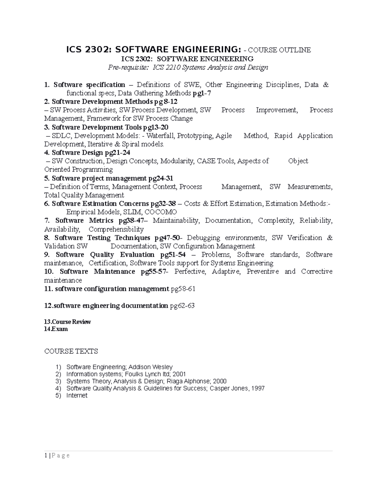 ICS 2302 Software Engineering: Comprehensive Notes & Course Outline ...