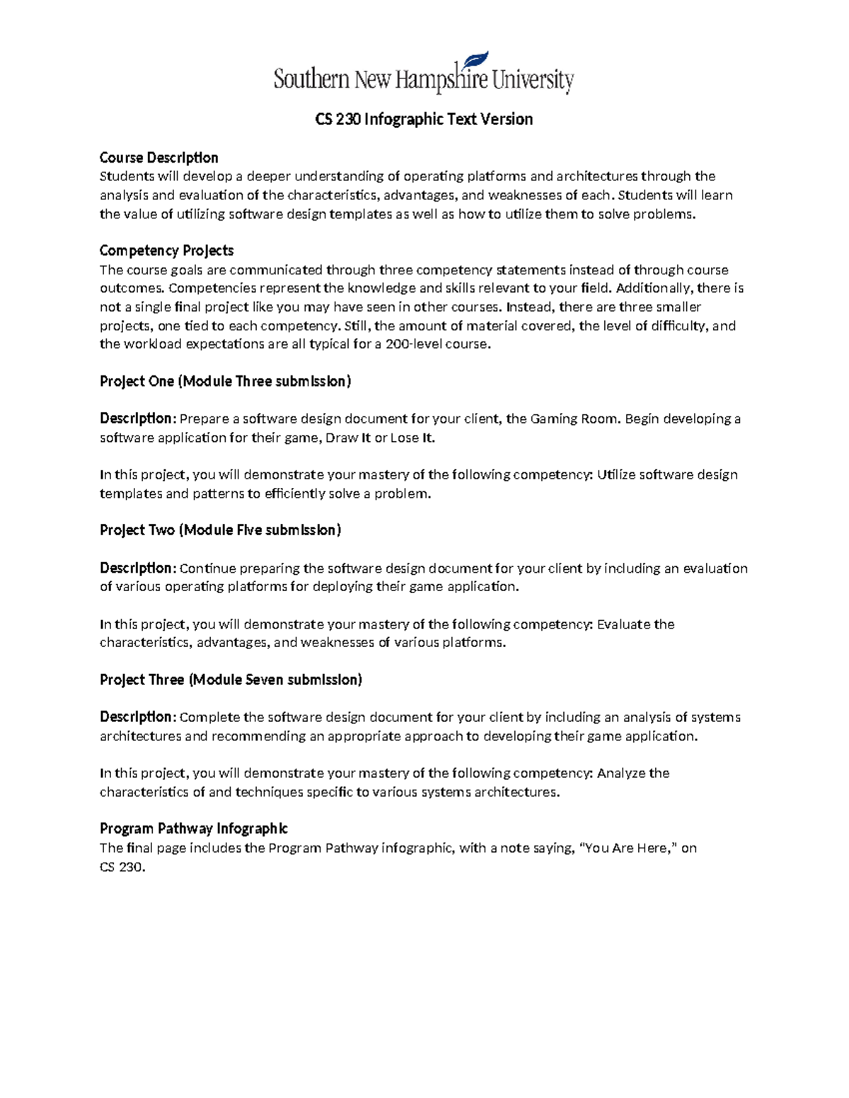 CS 230 Course Overview: Infographic & Competency Projects Guide - Studocu