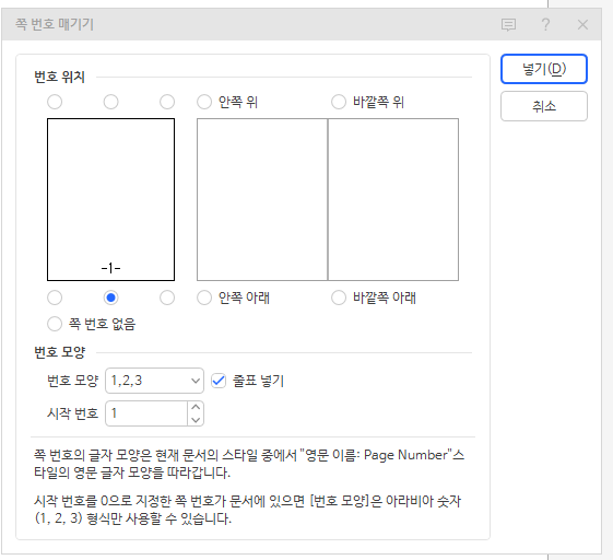 5강-한글 머리말/꼬리말 삽입 및 페이지번호 추가