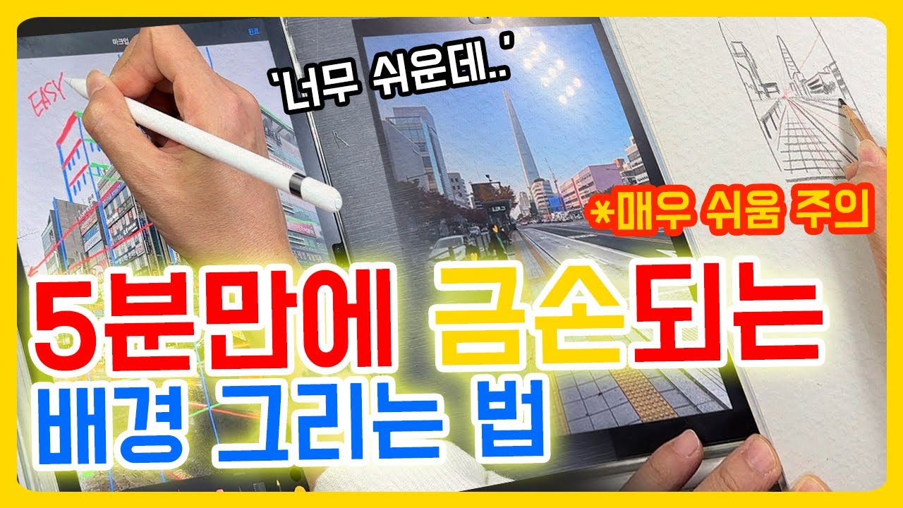 5분만에 배경 잘 그리기 쌉가능? 한 번 보면 평생 써먹는 배경 그리는 법😤 - YouTube