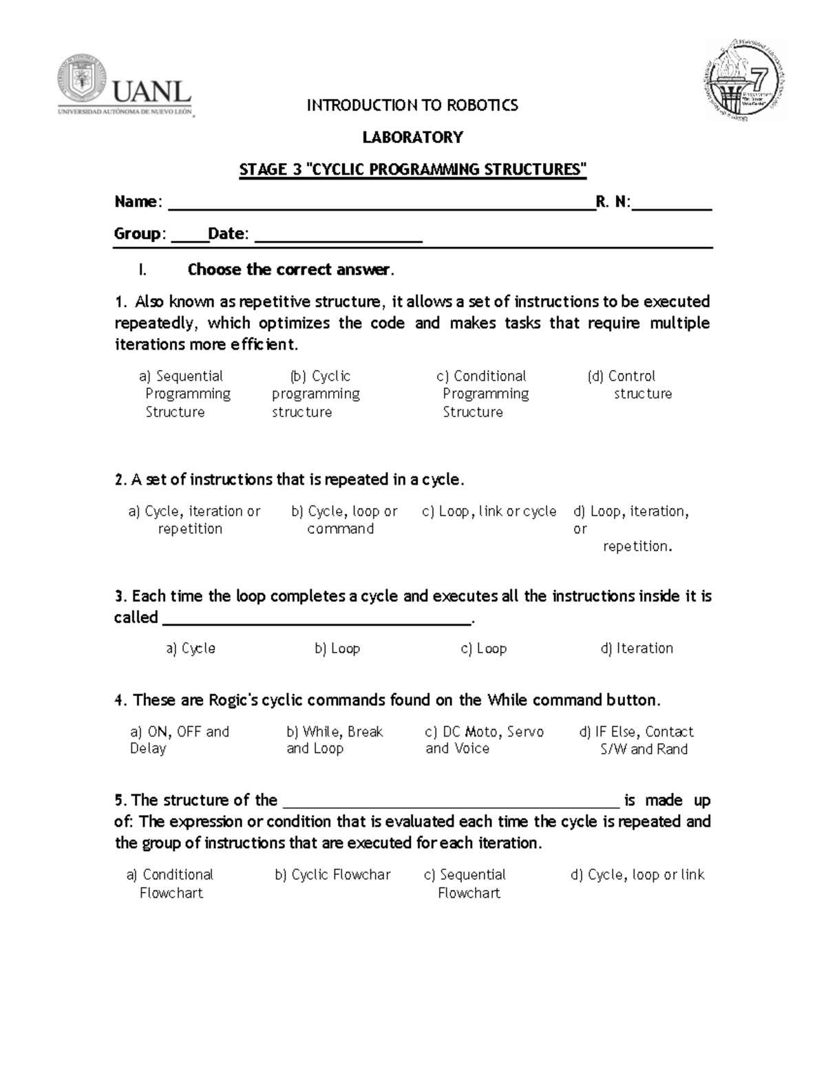 Stage 3 Lab: Robotics Programming Practice Material - Studocu